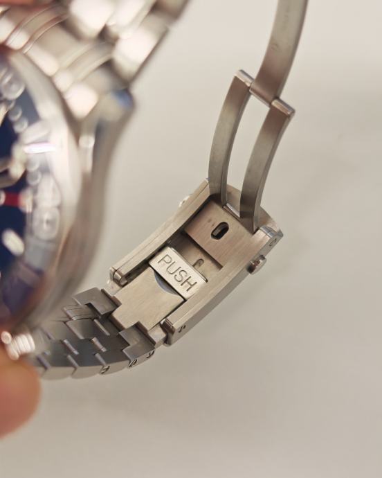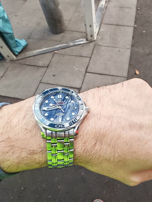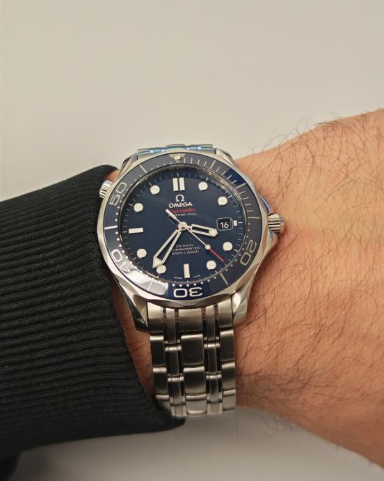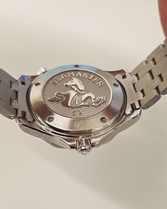 Omega Seamaster 300m godina proizvodnje 2019g. Sat je izuzetno očuvan te nikada poliran.Servis napravljen u 7mj 2025g (550€) u ovlaštenom Omega servisu.(Uz sat ide i račun od servisa).Na sat je stavljena original Omega Quick adjust kopča (300€)sa 6 pozicija mikro prilagođavanja veličine narukvice.Također sat dolazi sa 2 dodatna linka te njegovom starom kopčom,drvenom kutijom te karticama.