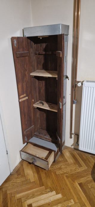 Izvedba: lim i drvo, visina 152 cm, širina 41 cm, ladica, dio za puške je 125x17 cm