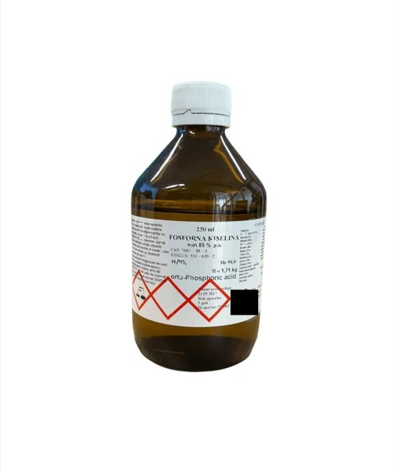 Fosforna kiselina (ortofosforna kiselina, fosfatna kiselina, H3PO4, eng.: phosphoric acid) 85%-tna, prehrambena.