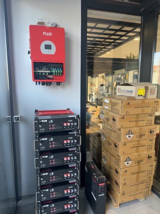 Oprema:Solarni paneli LONGI 455W Mono 11kom , Mrežni pretvarač FUJI 5kW trofazni,nosači za krov,kablovi,konektori i sva ostala oprema sa dostavom montažom i puštanjem u pogon - 5kW 52000kn