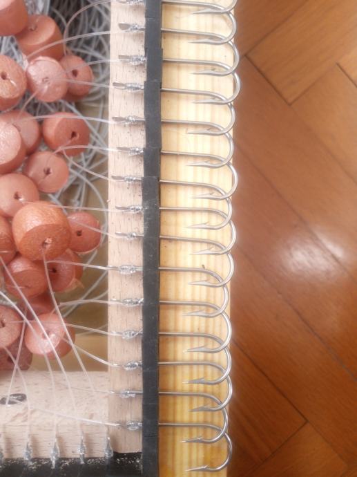 Prodajem parangal dubinski za oslice ,raže , lastavice , itd . 200 udica Drvena kašeta lakirana sa gumom . Udice 10 inox vmc piljak ili prama 0.55 big game cvorovi nemaju krajeve da manje zapinje . Konop armare farban 1 mm ( farban zato jel se lakse radi sa njime i lakse baca i slaze ) sa šuverićima . Izmedju svake prame olovo razmak 4 m .