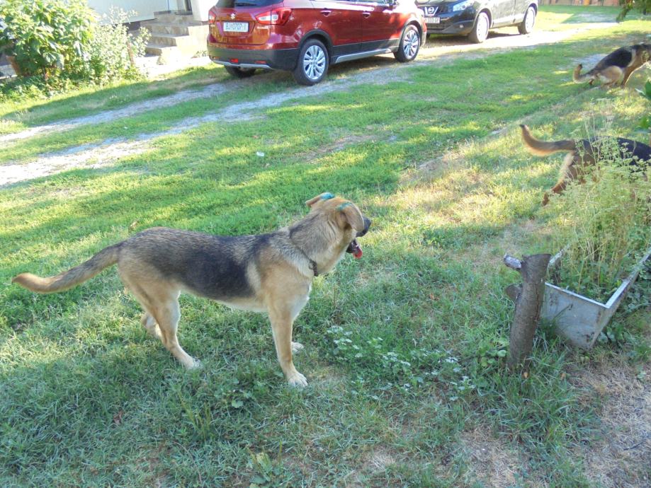 Pas križanc njemaćki ovćar ženska stara 10 mj. očišćena od parzita cijepljena i čipirana sa knjižicom dobar čuvar naučena na domače životinje miroljubiva prema dijeci.