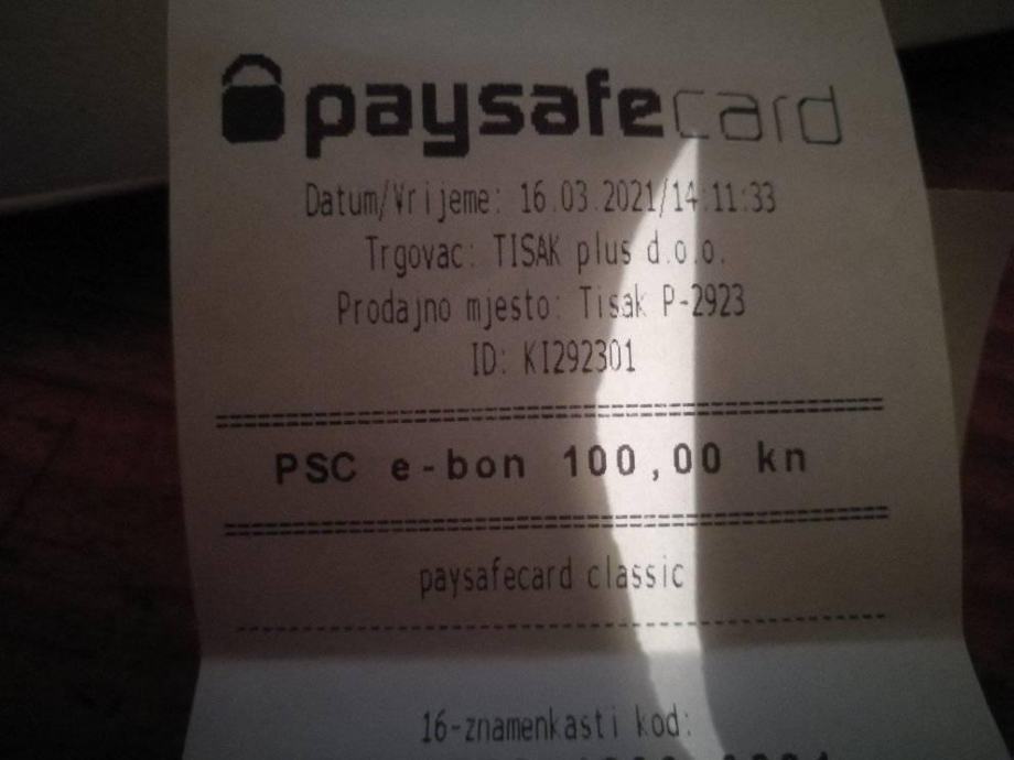Prodajem Paysafecard bon za kojeg sam mislil da je prepaid prek interneta tak da ga prodajem za manju cifru.