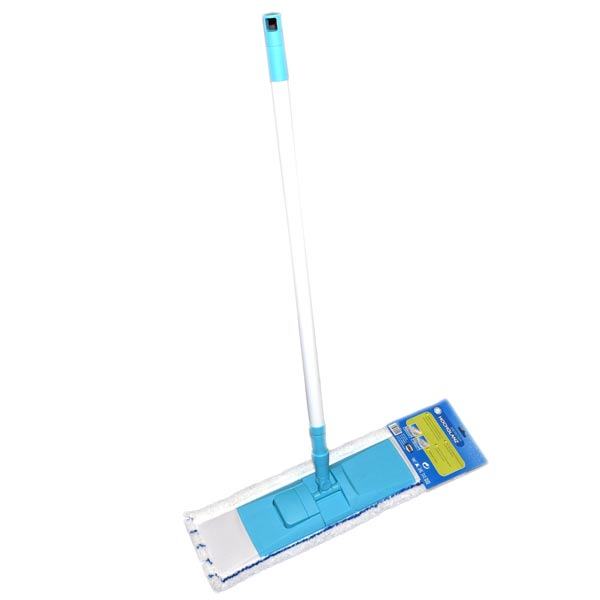 Komplet set brisač poda sa PVC drškom i širokim plastičnim postoljem na kojeg se stavlja krpa za pranje. Krpaza pranje je od mikrofibre tako da omogućava bolje čišćenje nečistoća. Služi za temeljito vlažno čišćenje podova velikih površina, može doprijeti do svih kutova za podu. Krpa dolazi u kompletu. Širina postolja: 42 cm, širina krpe 46x14 cm. Dužina drške: 120 cm.