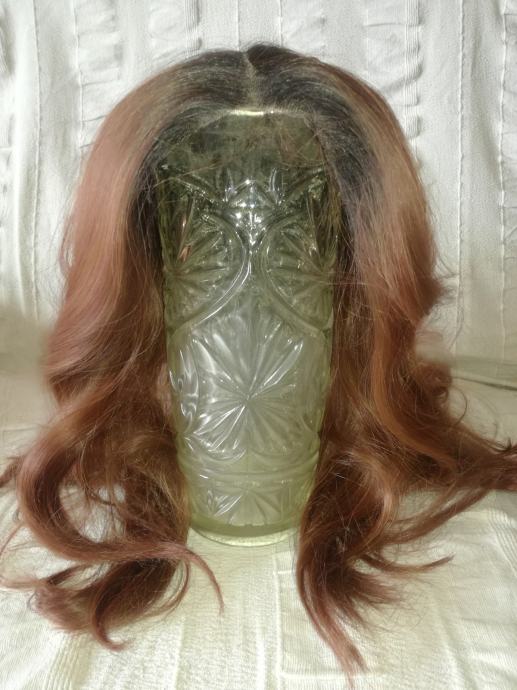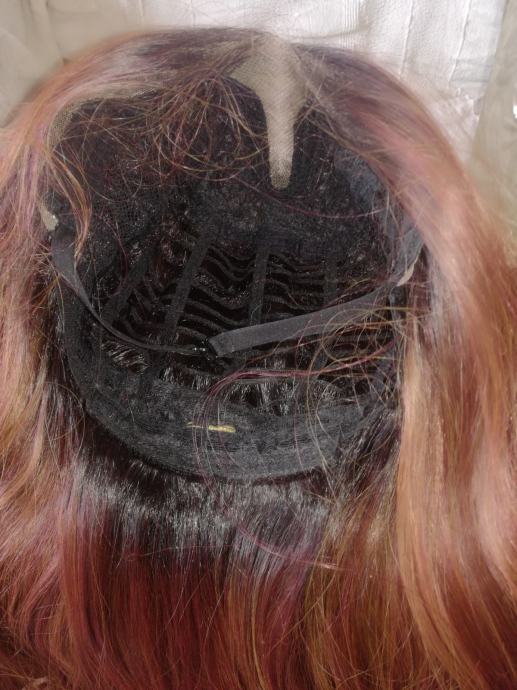 Perika od prave kose, zagasite crvene boje, od tjemena dužina 55 cm