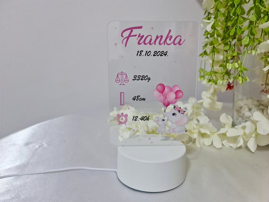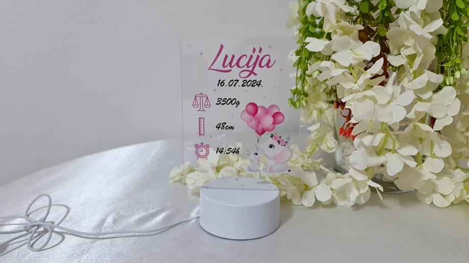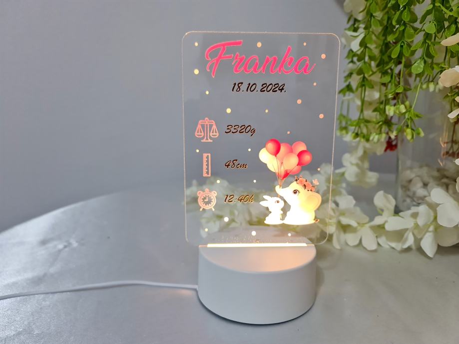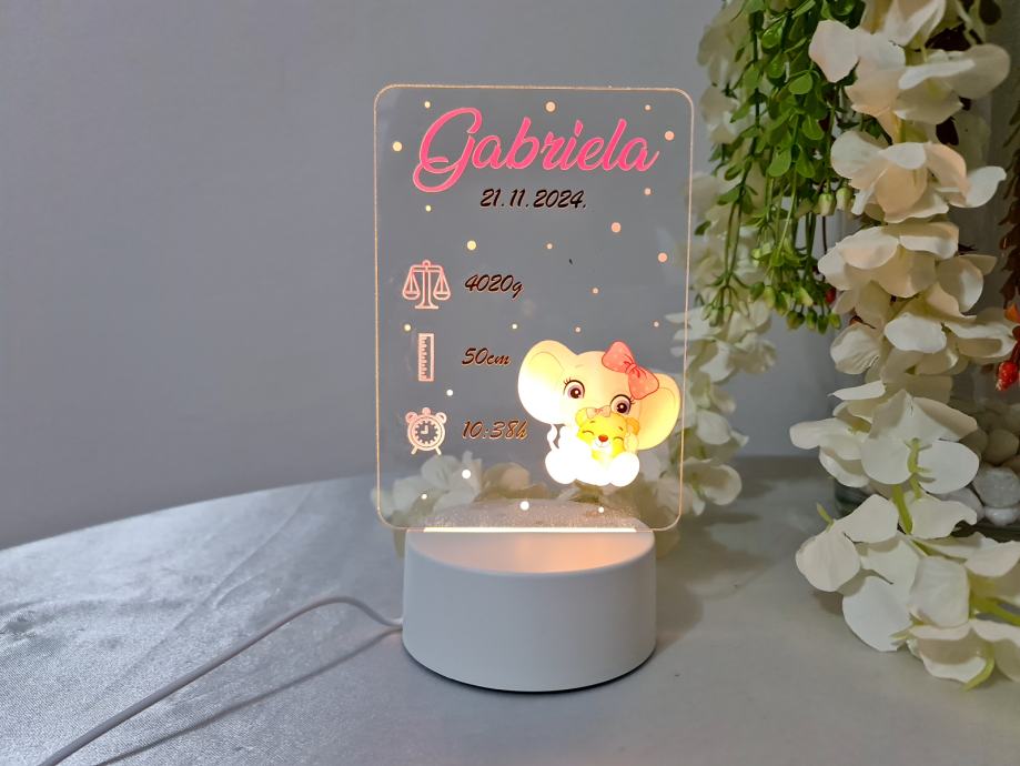 Personalizirana led noćna lampa je sjajan poklon za rođenje, rođendane, krštenja, pričesti, krizme ili druge prigode za djecu.