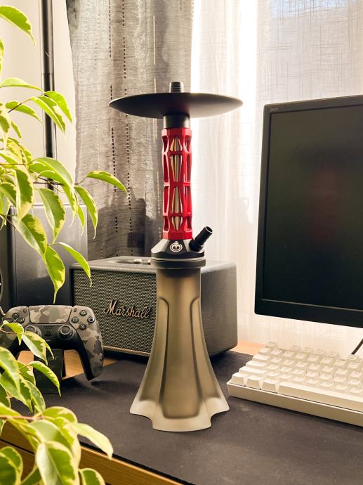 Nova zapakirana Phantom komplet Nargila / shisha, ukljucuje crno-crvenu bazu nargile sa atraktivnim dizajnom, crno silikonsko crijevo sa aluminijskim usnikom, gumena glava, i stangice za ugljen. Brza i jednostavna za sloziti.