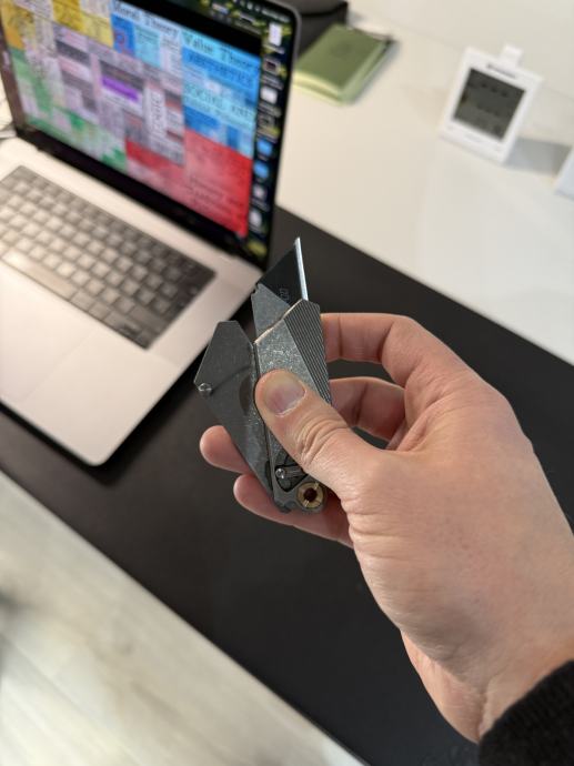 Prodajem Pichi Design G9 Titanium Utility Knife, premium nož/skalpel s tijelom od titana, dizajniran za precizno i lako rezanje. Vrlo malo korišten isključivo za otvaranje paketa, u odličnom stanju. Lagana i izdržljiva konstrukcija, ergonomski dizajn te mogućnost jednostavne zamjene oštrica čine ga idealnim za svakodnevnu upotrebu.