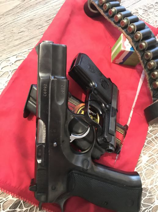 Prodajem Cesku Zbrojovku dugi 9mm parabellum, jedna kocnica, u odlicnom stanju, nije pucano ni u streljani, ni u lovu. Ocuvan ko nov, konzerviran vojnom masti, ne ostecen, uz pistolj idu pun okvir i 50 kom. Municije dugi 9 mm