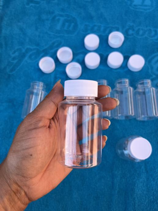 Plastična bočica prazna 100 ml x 10 komada, novo. Visina s čepom oko 87 mm, 48 mm širina, čep 32 mm.