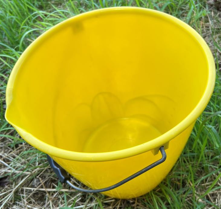 PRODAJEM ROBUSNU, ČVRSTU PLASTIČNU KANTU VOLUMENA 12 L S ČELIČNOM DRŠKOM, PROMJERA 30 cm, VISINE 29 cm.