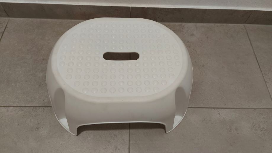 Prodajem bijelu plastičnu klupicu.Dimenzije cca 30 x25x15 cm.Namijenjeno djeci da mogu oprati ruke na umivaoniku, popeti se da sjednu na školjku i slično.