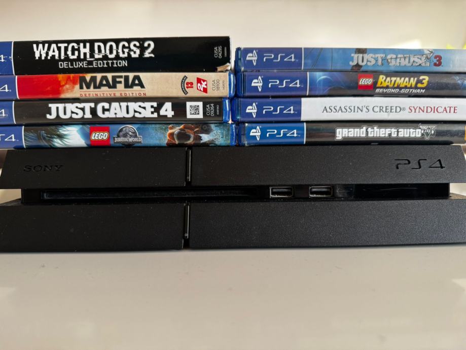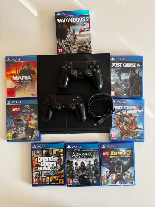 Prodajem uščuvani playstation4 sa 2 kontrolera, žicom za napajanje ps4, i 8 igrica uz njega. Kontroler se nije puno koristio i radi bez problema.
