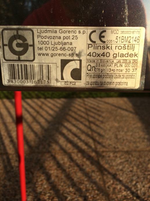 prodajem vrlo ocuvan plinski rostilj marke "gorenc" 40x40