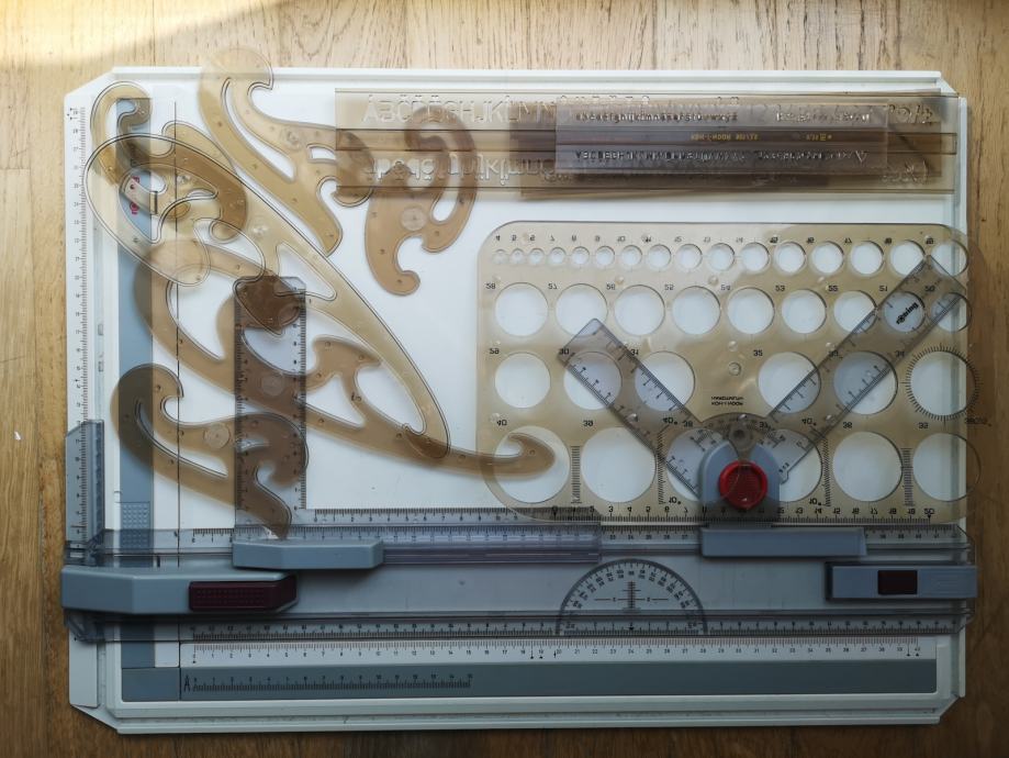 Rabljena ploča za tehičko crtanje sa svom dodatnom opremom, u dobrom stanju.
