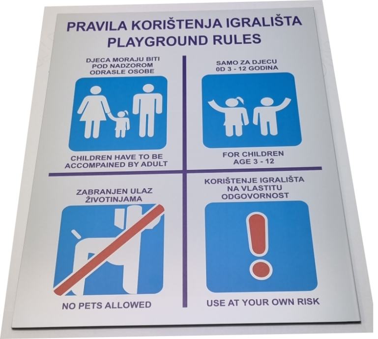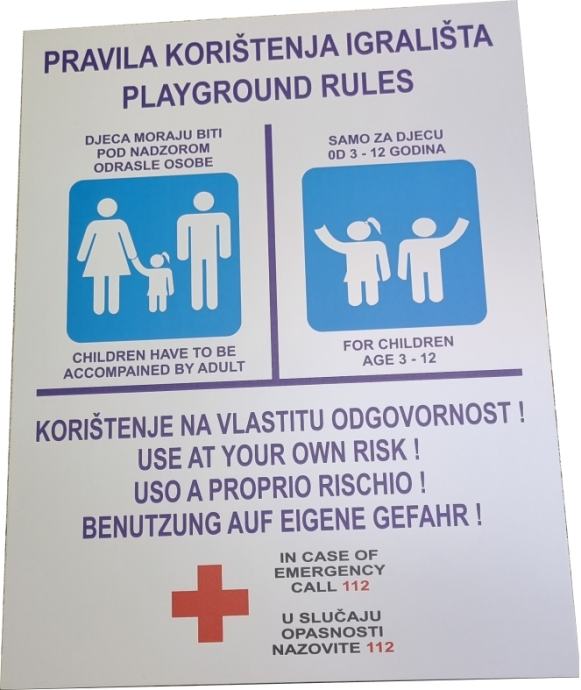 Ploča s oznakama upozorenja za igralište 30x39 cm ili po Vašoj želji , potrebi