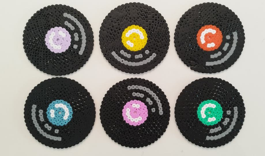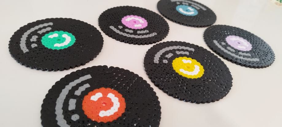 Prodajem podloške za čaše s motivima starinskih ploča, Perler Beads (pojedinačno ili u setu).