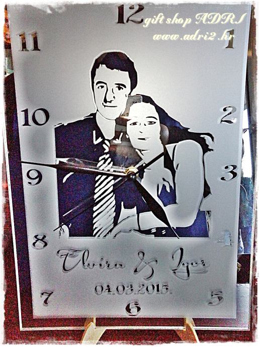 Možda zidni sat sa slikom slavljenika, brušeno ogledalo.