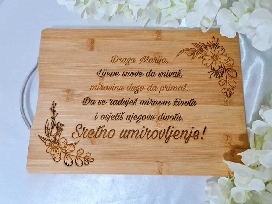 Ovaj jedinstveni poklon nije samo praktičan, već i emotivan podsjetnik na sve uspjehe i trenutke dijeljenja tijekom radnog vijeka. Izrazite svoje najbolje želje uz personaliziranu dasku - dar koji će biti cijenjen i čuvan zauvijek.