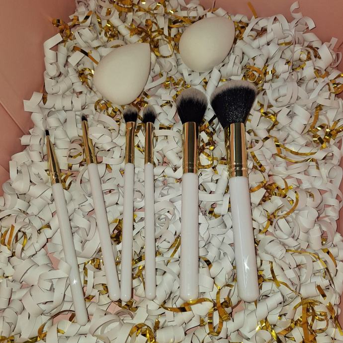 • Komplet četkica za šminkanje ( dužine 17,3 cm) i spužvica