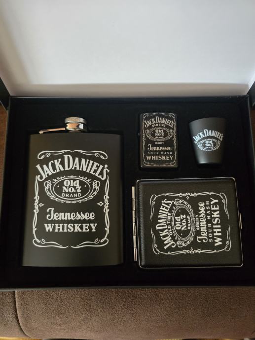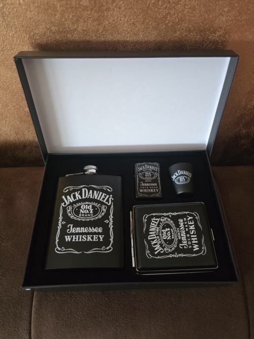 Poklon set za ljubitelje Jack Daniel’s estetike, u elegantnoj mat crnoj izvedbi s bijelim vintage tiskom. Komplet izgleda luksuzno i čvrsto, idealan za rođendane, kumstva, godišnjice ili kao efektan muški poklon.