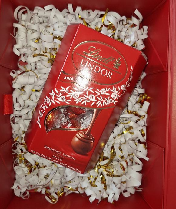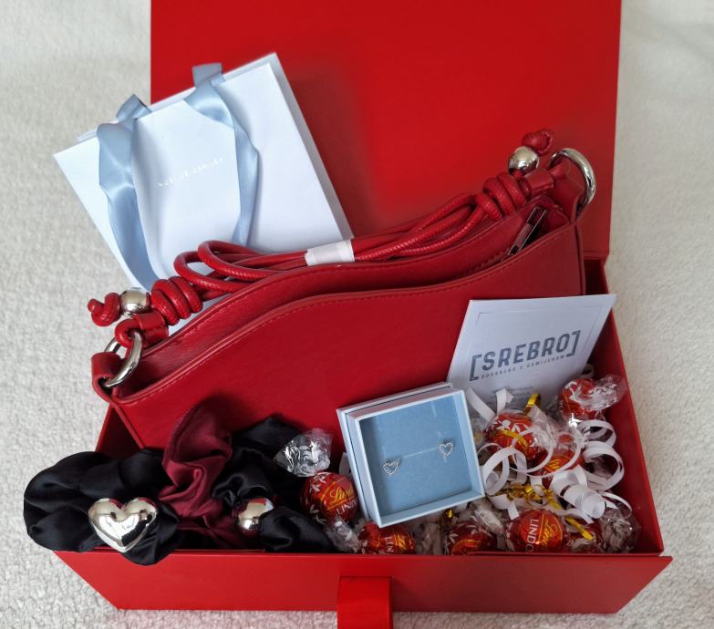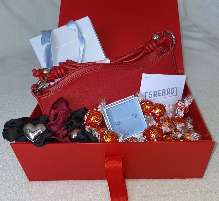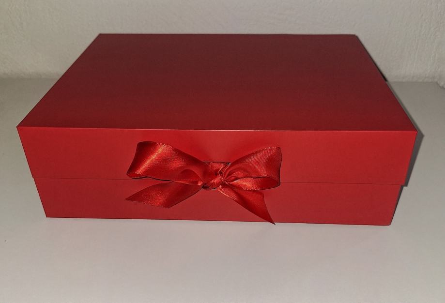 • Crvena kutija s magnetnim zatvaranjem i satenskom mašnom