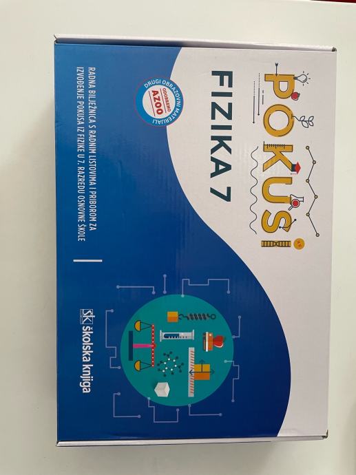 Kutija iz fizike za 7. razred s radnim listovima i priborom za izvođenje pokusa. Kutija sadrži i radnu bilježnicu fizike za 7. razred.