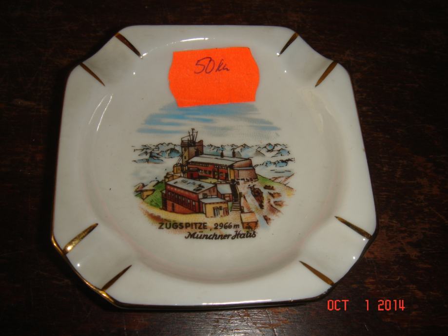 porculanska - suvenir pepeljara Zugspitze iz 60 - tih 8x8cm