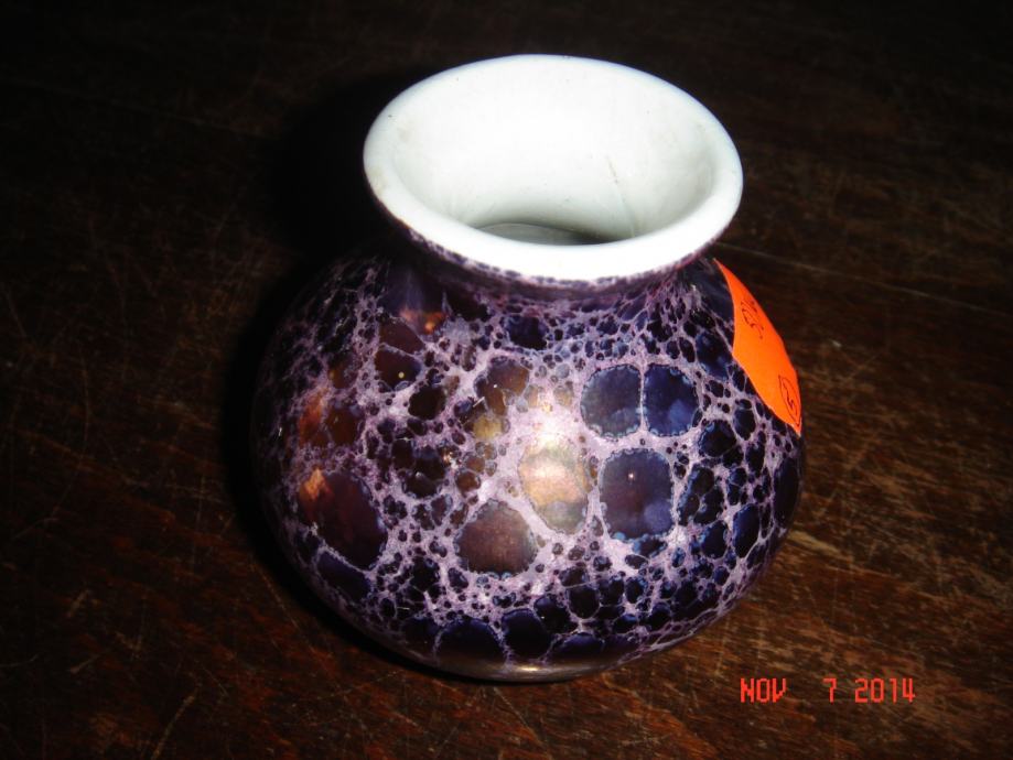 porculanska vazica ljubičasto - zlatne boje visine 7 cm, a promjera na vrhu 4 cm