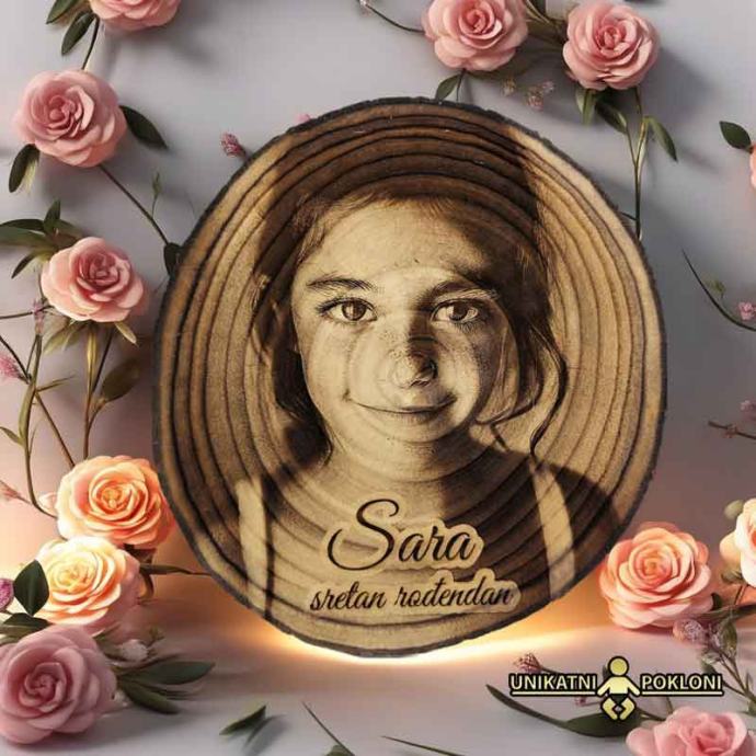 Neka uspomene ožive na najprirodniji način! Naš Portret na drvu izrađen je od kvalitetnog drveta paulovnije, promjera 30 cm, i graviran vašom omiljenom fotografijom. Svaki detalj pažljivo je izrađen kako bi stvorio trajnu uspomenu koja spaja prirodnu ljepotu drveta i umjetnost.