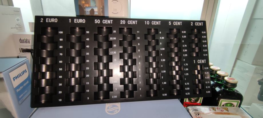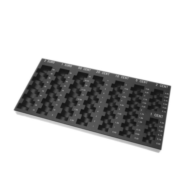 POS DOD Sortirna ploča za EURO kovanice, Najjednostavniji i najjeftiniji način sortiranja kovanica na Vašem blagajničkom stolu, Prima svih 8 denominacija Euro kovanica, crna plastika