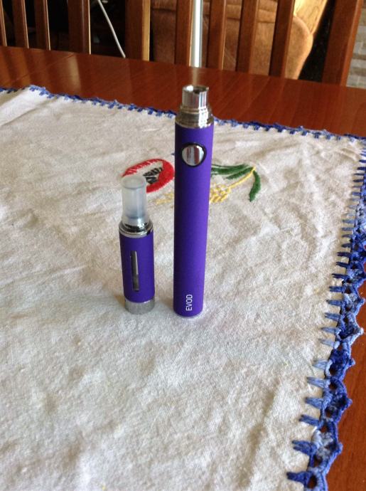 EVOD električna cigareta, boja: ljubičasta. Baterija 1100mAh, aluminijsko kućište sa premazom otpornim na ogrebotine. Cigareta je nova i nije korištena. Spremnik 1.6ml, ljubičaste boje, navoj od aluminija.