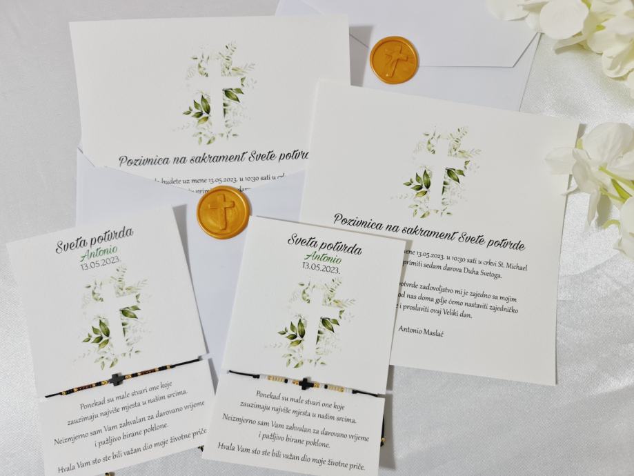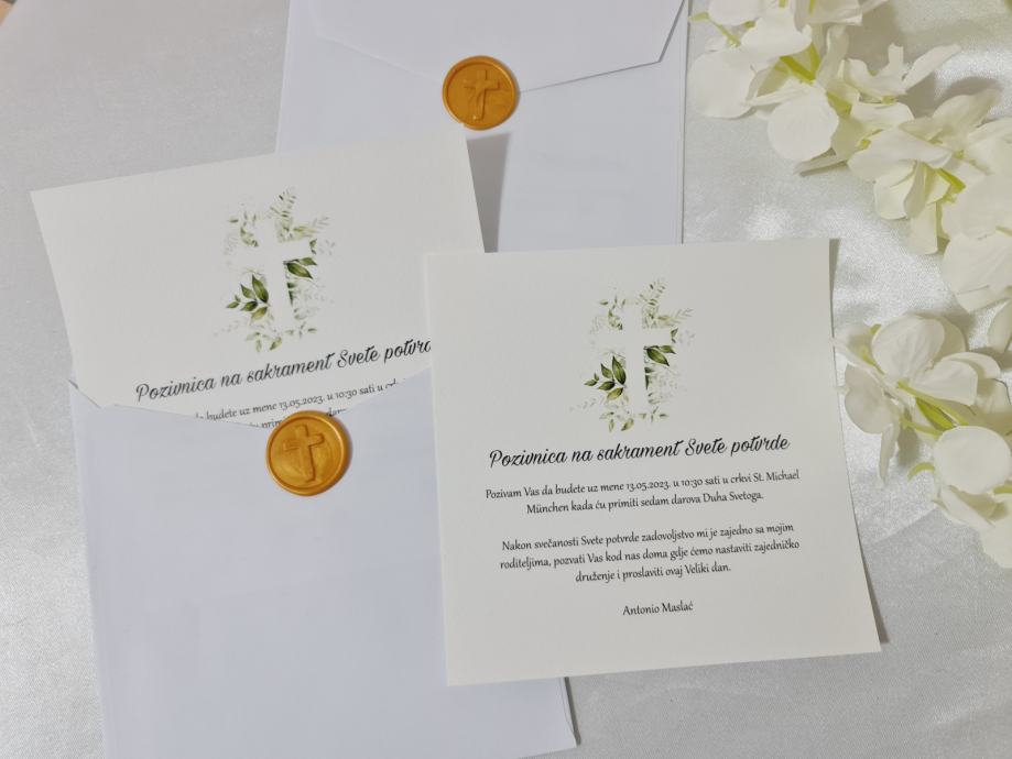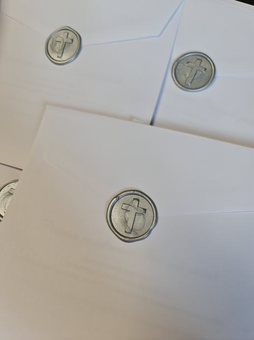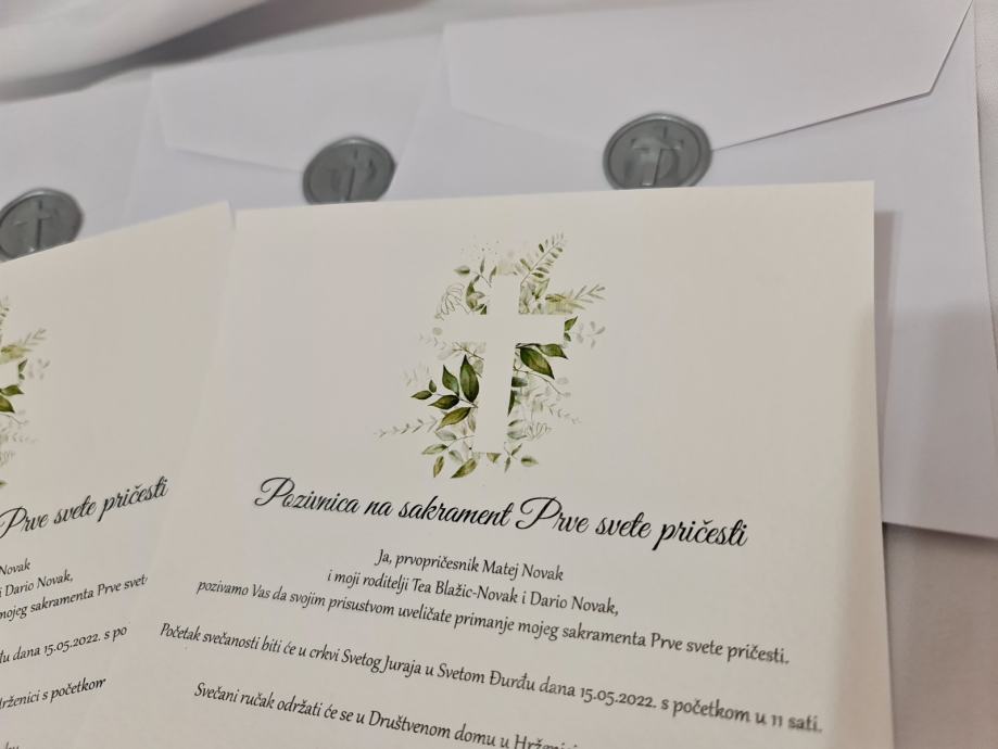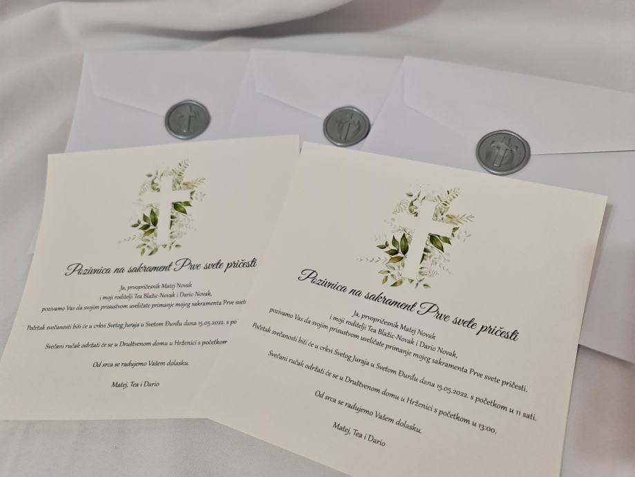 Pozivnice za krštenje ili prvu pričest sa pečatom od voska u obliku križa.