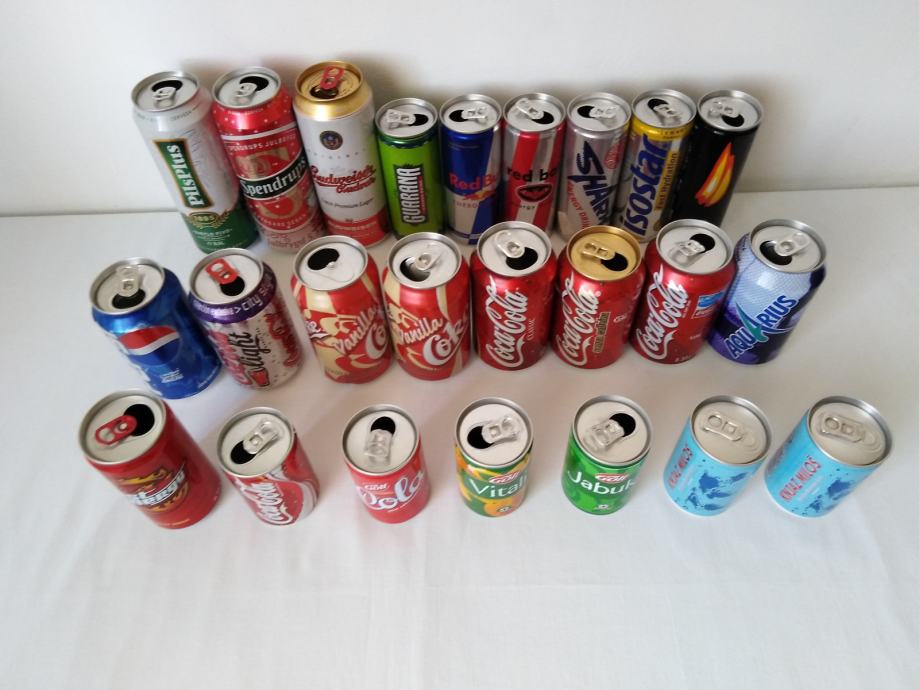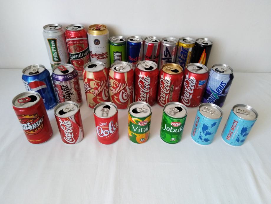 Veličina limenki: 0,5 L pivo, Coca Cola 0,33 L, američke 355 ml, mini limenke 150 ml,