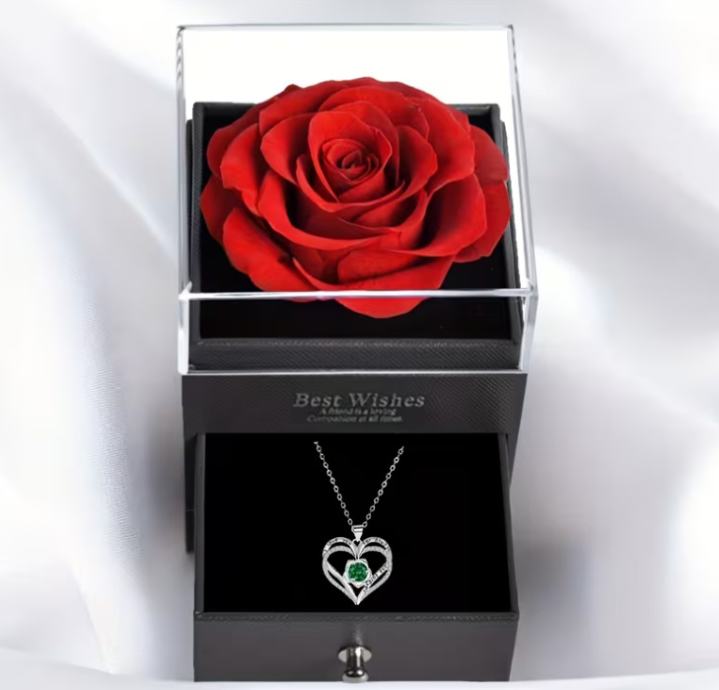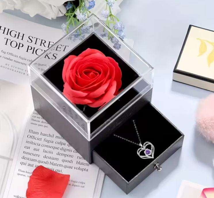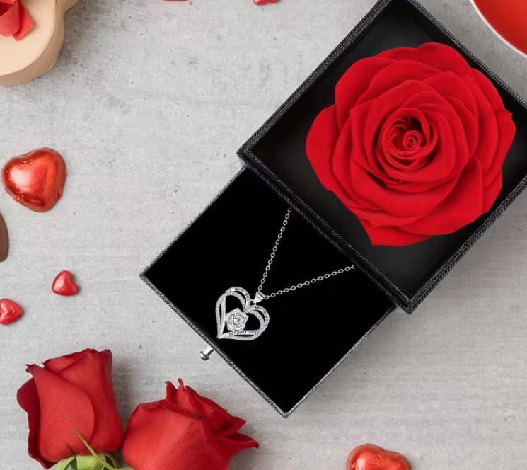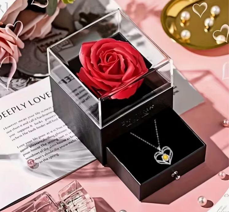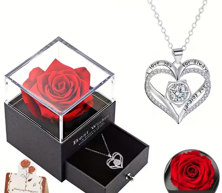 Poklon kutija s trajnom ružom, ogrlica s više privjesaka s ljubavnom ružom, jednostavan i izvrstan ženski nakit, poklon za majku, djevojku, najbolju prijateljicu..