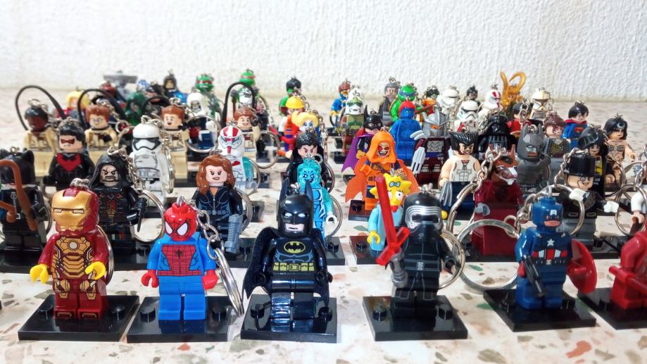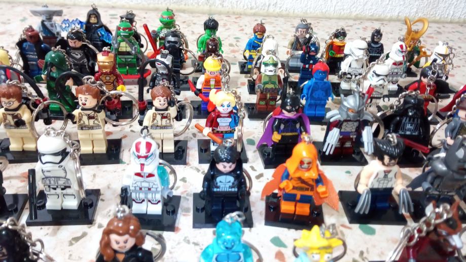 Prodajem više od 120 privjeska Lego figurica (nisu sve na slici). Uz figurice ide postolje i svaka je u vrećici.