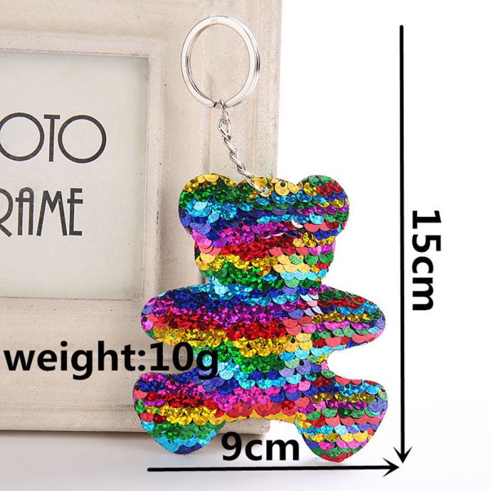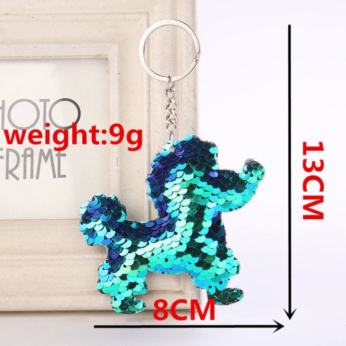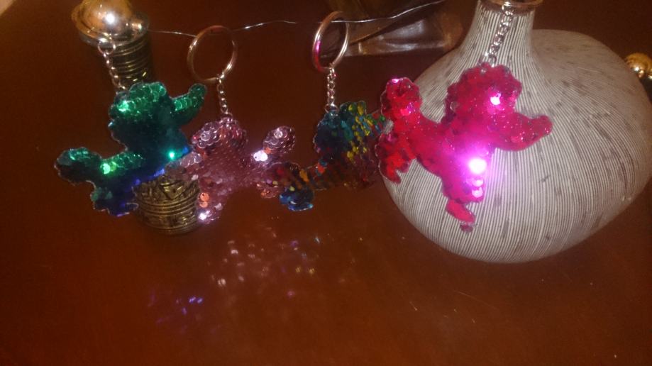 Privjesci obostrano šljokice punjene su i različitih su oblika (od zeca, djeteline i dr.) i boja, a visoki su od 8 do 15 cm ovisno o modelu
