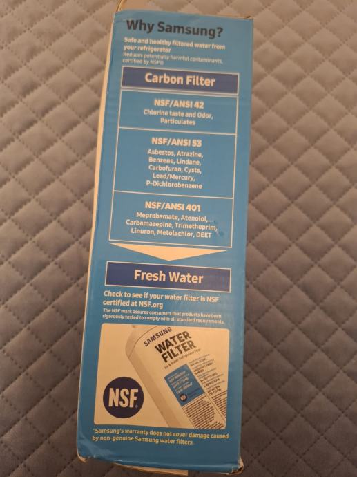 Prodajem 2 komada original filtera za vodu, DA97-17376 B za hladnjak SAMSUNG SIDE BY SIDE MODEL, RF23R62E3S9, mogu i drugi modeli hladnjaka za vodu. Cijena za 2 kom 40 Eur povoljno