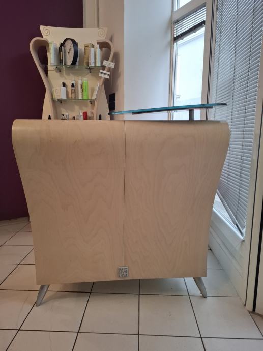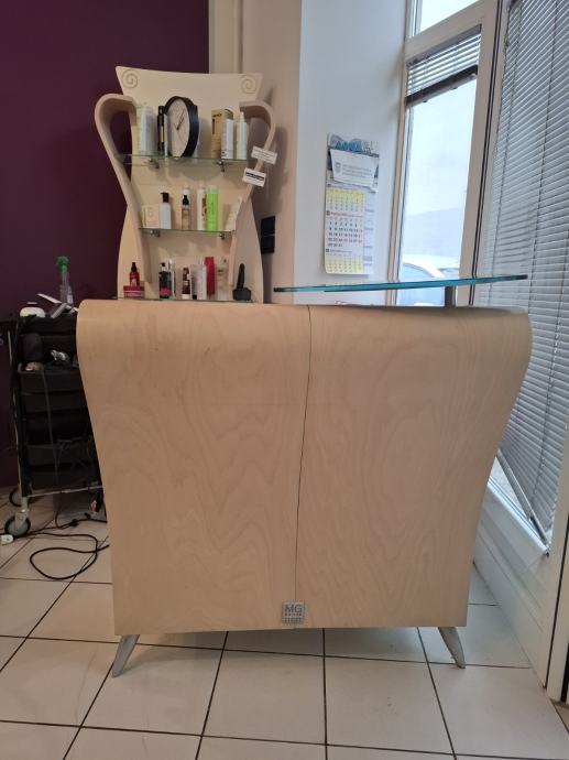 Prodajem frizerski namještaj za frizerski salon pult, vješalica,tri ogledala za radno mjesto i izložbenu vetrinu, Namještaj ima deset godina, na prodaju je zbog zatvaranja obrta i odlaska u mirovinu. Cijena je 300,00 eura.Može se i pojedinačno kupiti.
