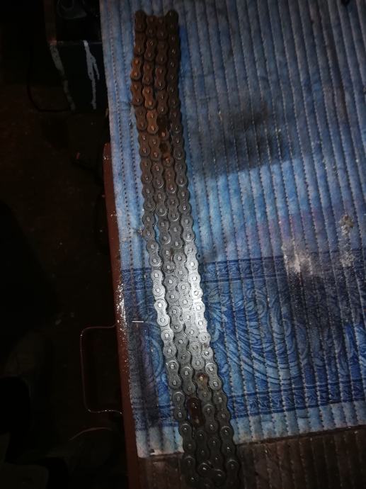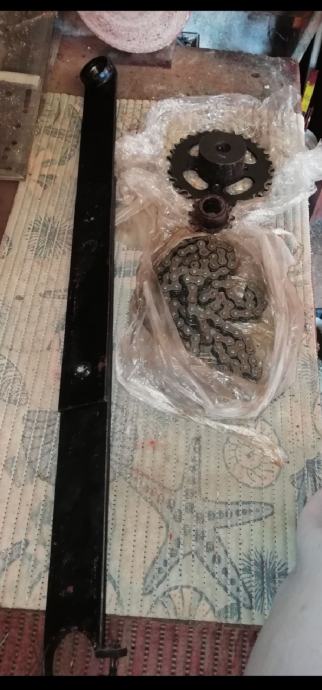 Prodajem novi lanac dužine 85 cm i polugu sa ležajem koji su bili predviđeni za mašinu br. 32 za mljevenje mesa , ali nije nikada korišteno, pogledajte fotografije. Cijena je 20 eura za lanac i poluga je 20 eura za komplet je cijena po dogovoru. Okolica BJ, info na mob. 098/960-8663.
