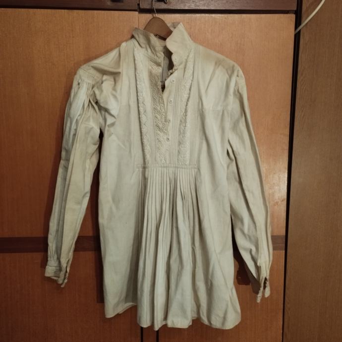 Nošnja je stara preko 200 godina, kod mene je oko 40 godina i korištena je samo nekoliko puta za slikanje. Sastoji se od košulje, gaća, prsluka i tkanice. Uz nošnju dajem dvoje vunene čarape i vunene stopalice za u klompe kao i prigodan poklon kupcu.