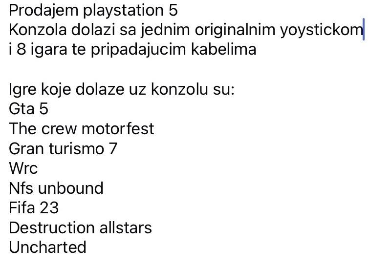 Prodajem ps5 za 350 €. Dođite autom. Ne šaljmo poštom.