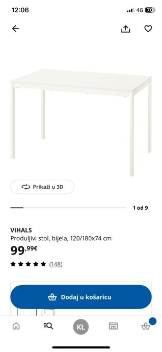 Prodajem skroz novi stol iz Ikee star godinu dana, razlog radi selidbe.