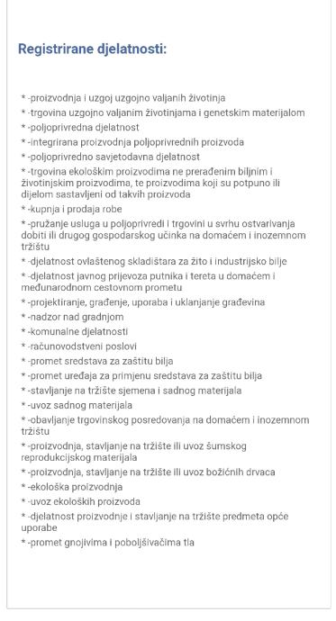 Tvrtka je specijalizirana za uvoz i prodaju stočne hrane, ujedno smo i zastupnici određenih robnih marki za RH. Posjeduje svu potrebnu dokumentaciju i carinski broj.