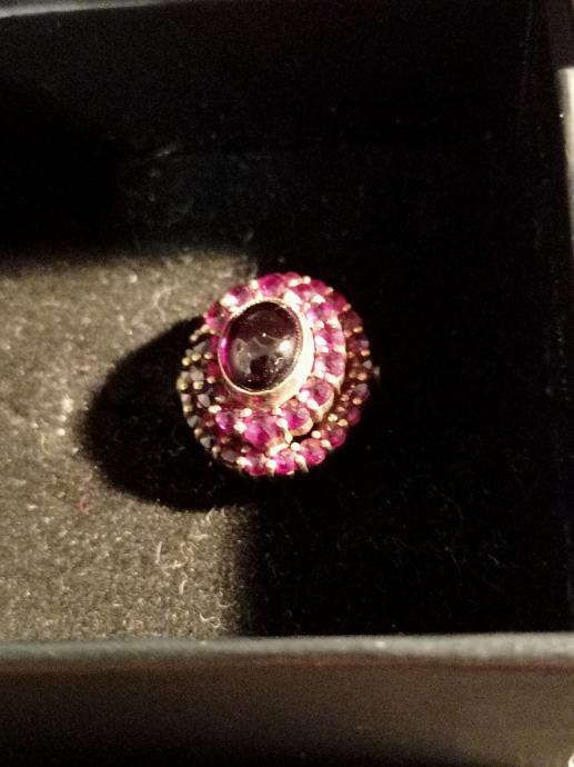 Srebrni prsten Bohemian silver garnet ring. Veličina hk 15.