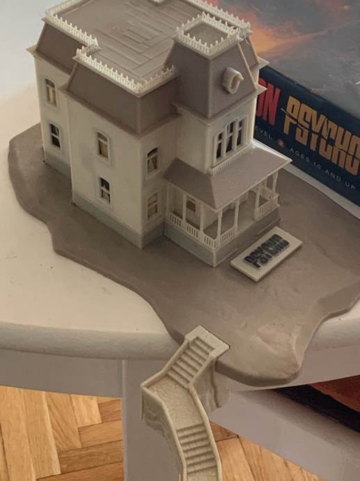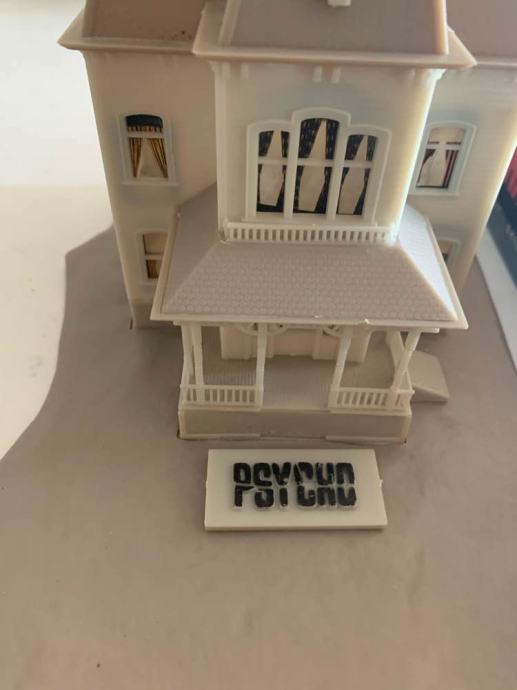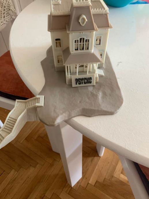 Prodajem maketu kuće kultnog filma “Psycho” složenu.. dimenzije: dužina 16 cm a visina 12 cm..kućicu se još može pofarbati bojama da bude u autentičnoj boji kuće iz filma... rijetko..Plačanje na račun ili gotovina.