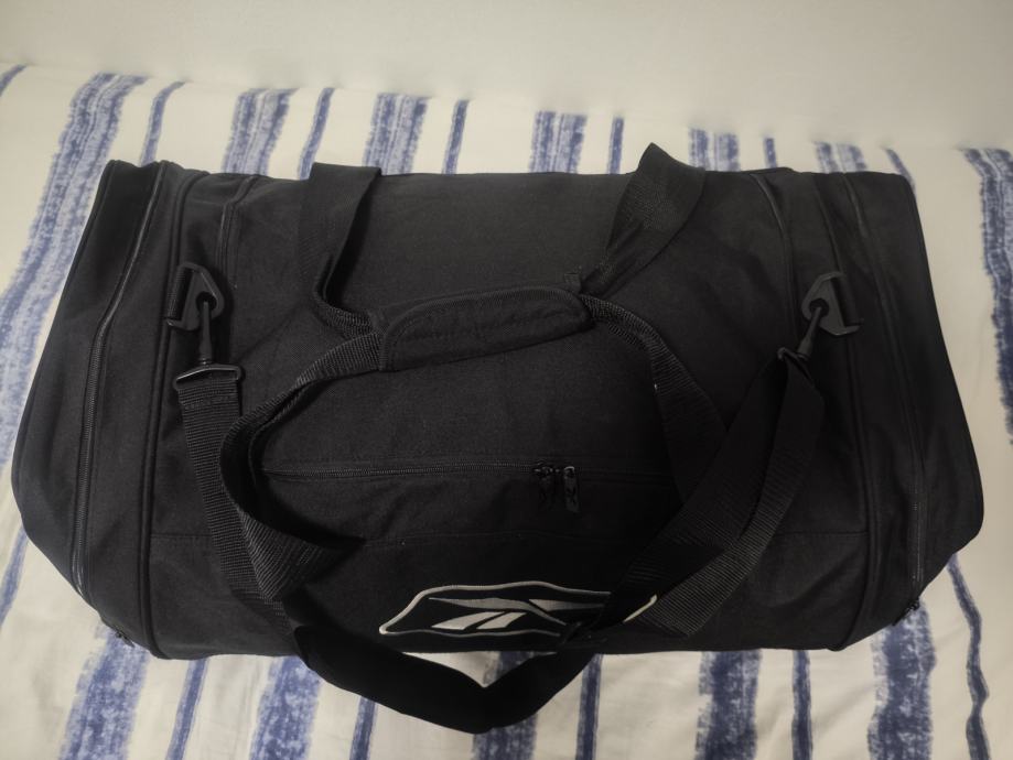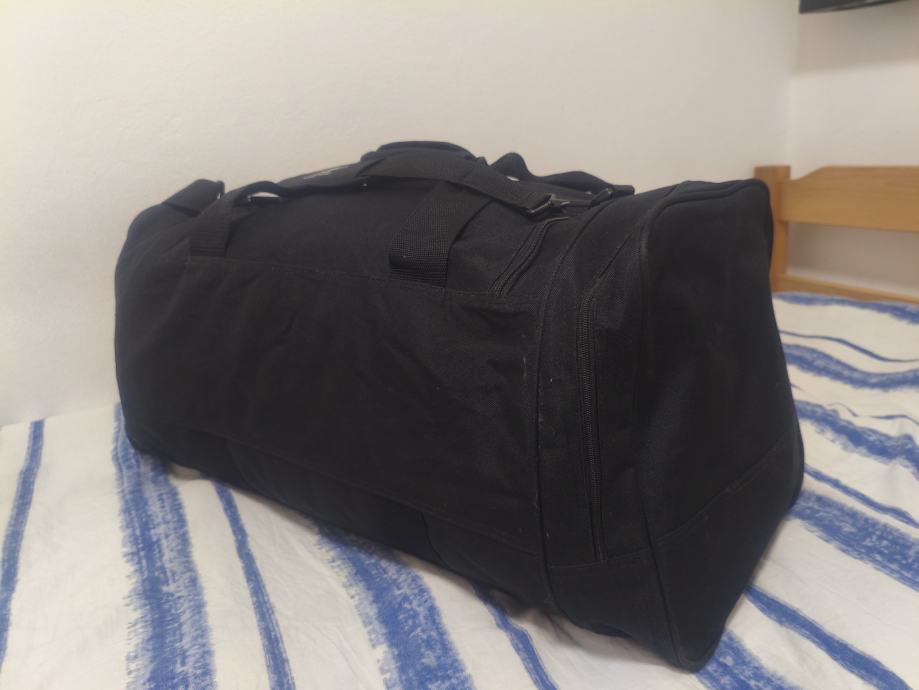 Velika putna torba,sa svake strane ima džep. Kratko korištena. Veličina: dužina 55 cm, sa džepovima 70 cm. Širina 30 cm i visina 30 cm.