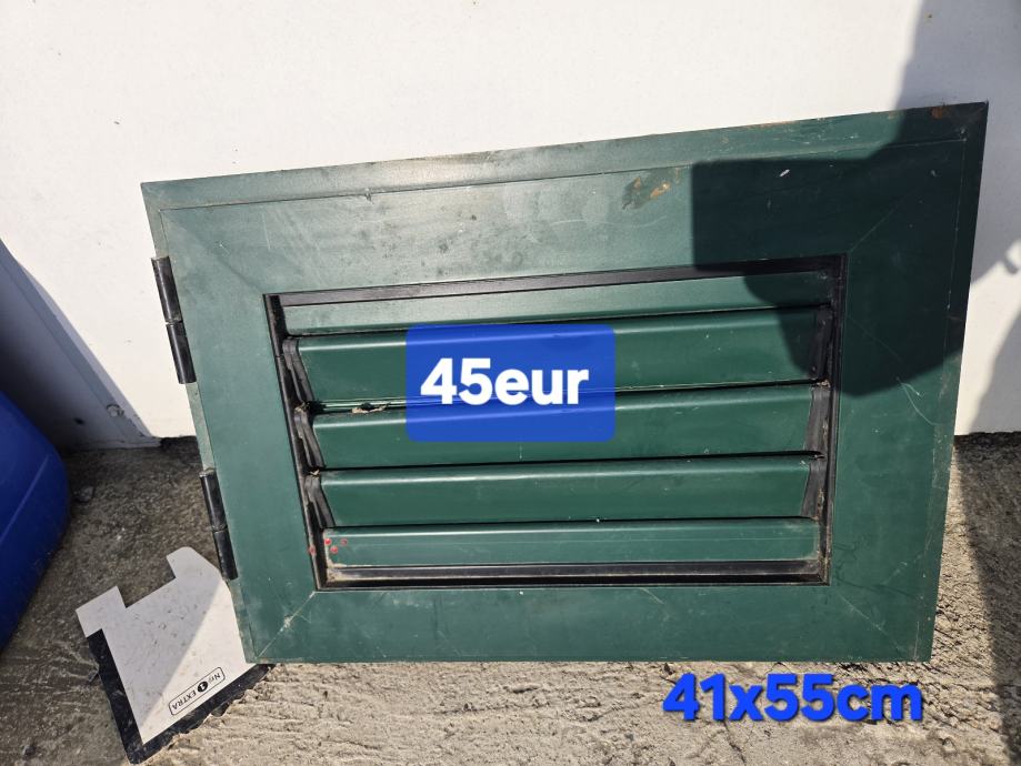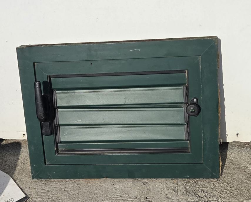 Prodajem rabljeni PVC prozor s roletom, zelene boje. Prozor je opremljen žaluzinama koje su integrirane u okvir te ima ručku i bravu za zatvaranje. Dimenzije su 41x55 cm.