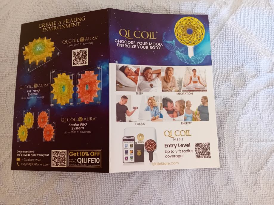 Qi Coil™ Mini sustav je prijenosni sustav za podršku dobrobiti koji koristi tehnologije poput Rife frekvencijske terapije i PEMF-a (pulsirajućeg elektromagnetskog polja) kako bi vam pomogao: