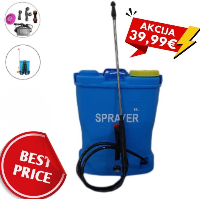 Pokreće se baterijom od 12V / 10Ah, ova prskalica značajno štedi rad i postiže 3 do 4 puta veću učinkovitost od ručne.